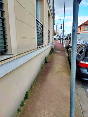 A propos de cet immeuble implanté directement sur ce trottoir très étroit: